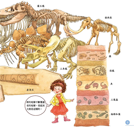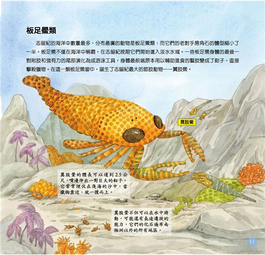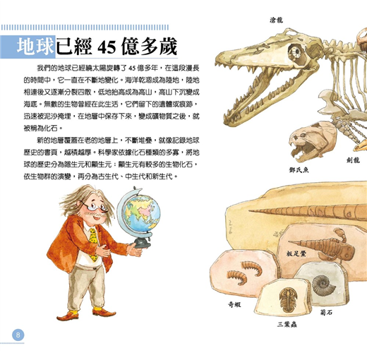 *全書精美手繪,每個頁面都是一幅值得收藏的插畫。附有:地質年代與生物演化階段表,方便隨時對照動物與其他生命的演化關係。