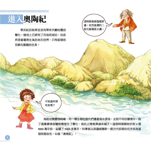 從生命誕生、歷經滅絕、到人類祖先出現,涵蓋了12個地質年代裡重要的演化過程。本套書《古生代的生命故事》包括古生代的6個紀: