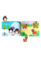 依照書頁上的數字與文字,貼上動物正確的數量。