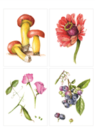 2020年,溫蒂在第一本書出版的十年後,再推出這本《植物畫的基礎》,經過這些年來教學與創作的經驗累積,她以更有系統、更清楚的架構介紹植物繪畫,點出單一光源、形體明度變化與用色技巧三大重點,並延伸到廣泛的植物素材,包含不同形態的花、葉、枝條與果實等等,每個素材都緊扣三大重點,又因素材的特性,額外加入特別的小技法,讓反復練習的過程增添新鮮感。此外,我喜歡溫蒂在畫中加入觀察筆記的獨特風格,這豐富了植物畫的表現方式,也讓觀眾從畫中更了解植物,書裡溫蒂也分享了她當下的創作歷程。