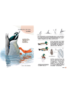 全書收錄84幅實物尺寸的鳥類繪圖,從水鳥、猛禽到雀鳥,個別鳥種的曼妙姿態躍然紙上。精采、知識量濃密的文字,搭配連續動作分解以及構造解剖等細部繪圖,讓讀者交互參照,一探鳥類日常作息背後隱藏的生物知識: