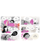 原本鮮艷美麗的桃紅,開始大面積佔據書本頁面,在瑪雅天馬行空的想像力下,「女王國」的城堡、馬匹、士兵、臣民,一個接著一個成形,拓展、包圍、擠壓其他孩子。桃紅開始讓人不適,甚至變得刺眼。眼看著「桃紅勢力」蔓延,孩子們想要開口,卻屢屢被「女王」打斷。從領導者到女霸王,瑪雅的轉變似乎在不知不覺間,然而,若是反覆閱讀、仔細觀察,就能發現微小的線索。