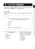 【閱讀】測驗內容:考試時間約45分鐘。題目分為詞彙、段落填空、閱讀理解三個部分,共35題。