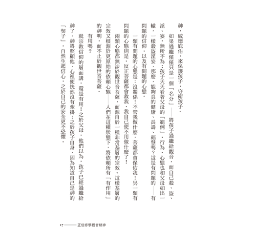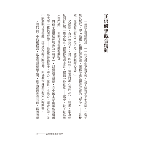 念觀音,當下便有用,當下便能寧靜、能安心。不一定需要有所求、有所感應——有所求念觀音,很好;無所求念觀音,那是平常修行、念自家珍寶,那更好!它是鍊心之道,練習「無著」、「無執」與「無求」。