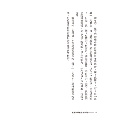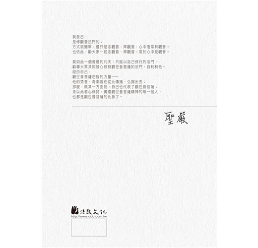 我如此一個普通的凡夫,只能以自己修行的法門,勸導大眾共同發心修持觀世音菩薩的法門,自利利他。 ——聖嚴法師
