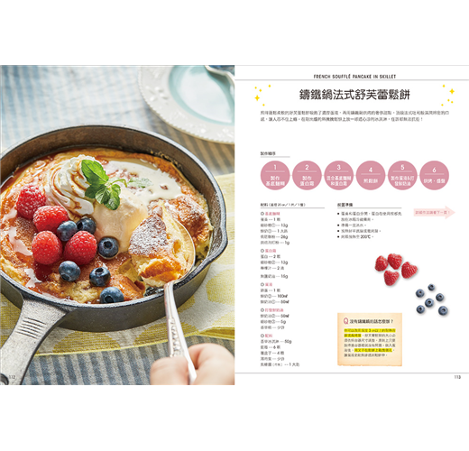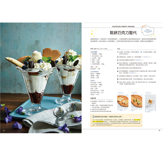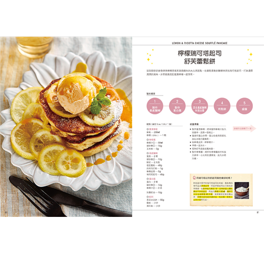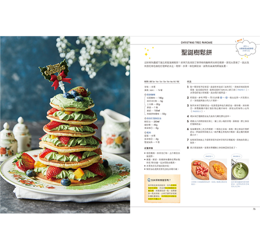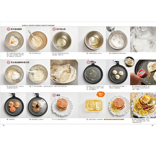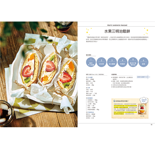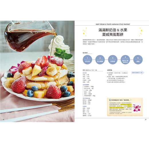 從基本麵糊作法到百變裝飾的鬆餅食譜,全書以俯視、定格的大圖呈現。材料的混合順序、麵糊的拌合手法、用瓦斯爐、IH爐或電磁爐焦烤的過程、以及裝飾的手法等等,也都有詳盡的圖文說明,讓人只要看圖就能輕鬆理解。即使是第一次做的人,也不會害怕失敗,光是看著食譜就能讓人充滿自信,一定能做出好吃又好看的完美鬆餅。