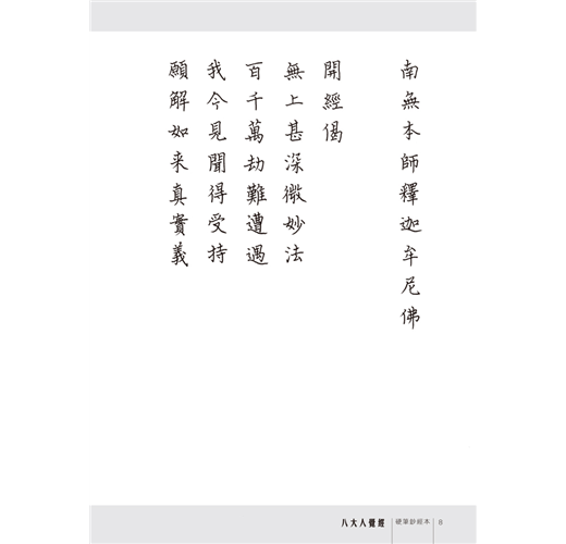 6. 硬筆鈔經本採用書法藝術概念,邀請書法家以硬筆楷書書寫,既有書法氣韻生動的美感、自在變化的空間感,更符合現代人書寫的便利。