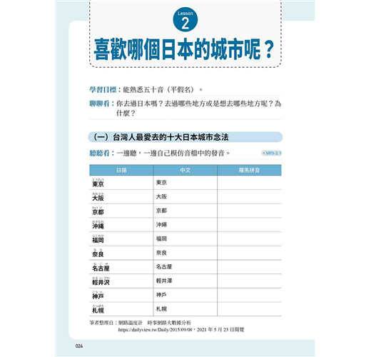 ‧從五十音導入,帶您開口就會說日本各大都市名稱與逛街景點!