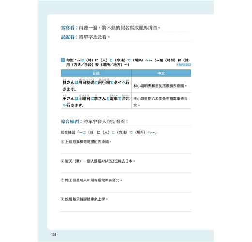每一課依循「學習目標」→「聊聊看」→「聽聽看」→「寫寫看」→「說說看」等學習架構,拋開困難的文法,日語聽、說、讀、寫一本通。