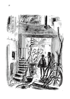 誰也沒有答話。我們三個人都站著,心裡怦怦地跳;突然頂樓通到廚房樓梯的門打開了,有一個人走下梯級,穿過廚房,來到餐廳陰暗的進口處。