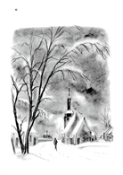 洗禮的鐘聲,就像是節假日的鈴聲因為在錯誤的時間和地點響起,而戛然停止了。布雅東和他手下的人,斜背著武器,帶著水泵,小跑步地走開,跑到第一個拐彎處,就看不見了,只是後面跟著四個默不作聲的孩子,他們寬大的鞋底踩著鋪霜大路上面的小細枝。我沒敢跟著他們跑。