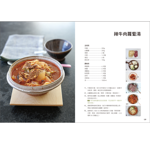 忙碌時一道鍋飯就是一餐!但如果想要增加配菜,或是天冷來碗熱湯,本書也提供辣牛肉蘿蔔湯、辣炒櫛瓜、醃漬杏鮑菇等金老師家私房湯品、小菜、醃漬菜,讓你簡簡單單,豐富一日三餐。