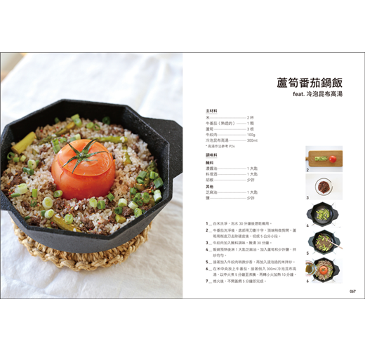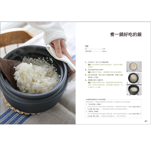 書中詳細描述每一道鍋飯從備料到製作的過程,從鍋具的挑選到食材的選擇、可替換方式,以及各步驟的重點標示,並包含重點步驟圖,即便是第一次做也能快速上手。
