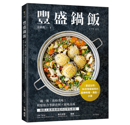 「全家好好吃一鍋飯,是作者金研我小姐在《豐盛鍋飯》這本書想傳達給我們的。希望細細品讀過這本書的你,不論是在一年四季或一日三餐中,都能找到美味、豐盛並餵飽身心靈的一鍋飯。」