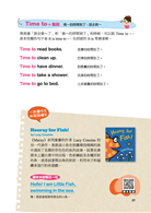 有些針對親子的英語讀物一翻開,畫面很精彩、內容很豐富、解釋很清楚,感覺就是一本很完整的英語教材,但要是補充的資訊過多,如單字解釋過多,或是與日常生活不相干的故事篇幅太多,那麼使用這本書跟孩子互動的方式,反而像是照本宣科一般,孩子只是聽父母講,而沒有與父母太多互動的機會。而且,父母在說故事時,若不太會跟孩子互動的話,那麼孩子很快就會對這樣的親子時間感到厭煩、失去耐性。因此,唯有當孩子對父母說的話、書裡的內容不斷地產生好奇、自主發問或是給予回應時,這樣的互動才有實質上的學習意義。