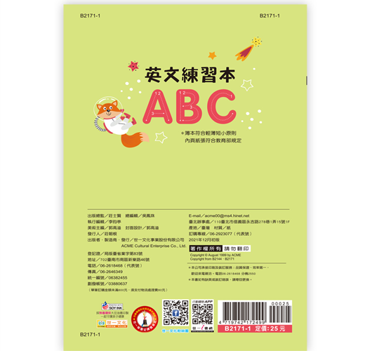 以大豆油墨、白道林紙雙色印刷、紙質高級,符合教育部規定用紙。 供學習英文者練習書寫英文,以協助其書寫流利與流暢。 書內簡附字母書寫表。