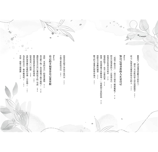 1.在疫情時代、斜槓社會發展下,每個人與自我相處的時間越來越多。本書以溫暖的文字,呈現與自我的正向對話,分享讓自己閃閃發亮的幸福之道。