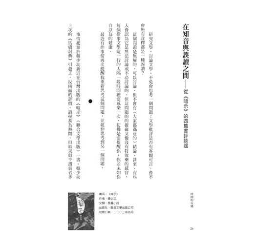在知音與誤讀之間──從《暗示》的四篇書評談起