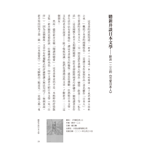 聽新井談日本文學──新井一二三的《可愛日本人》
