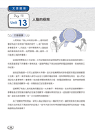*選文主題最豐富:內容分基礎篇及進階篇兩大類共30個單元,每單元各包含1篇文意選填及1篇篇章結構。選文題材包羅萬象,涵蓋環保、科普、醫療保健、歷史人文及生活等類型,俾使讀者在磨練考試技巧的同時,增進知識的廣度。