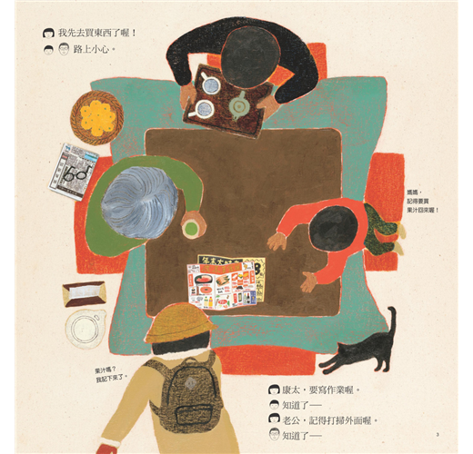 ◆這本繪本勾起我的各種家庭回憶。從正上方固定視角的構圖是獨一無二之處,雖然只從正上方看見這個家,但對話和動作非常豐富,推薦給所有家庭。