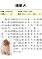 4. 每一種狗均標示英文名、原產國、平均壽命、體型(身高、體重)等基本資料,除了強化認知,也方便查閱,可以讓孩子快速建立基本概念。