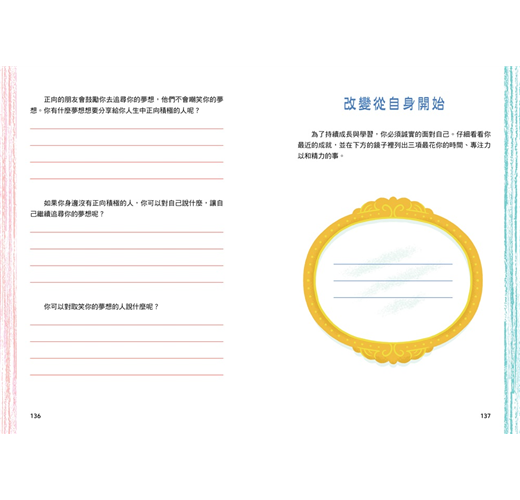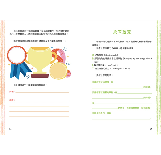 ◎超過30個主題、129道練習,邊寫邊內化8種成長型思維