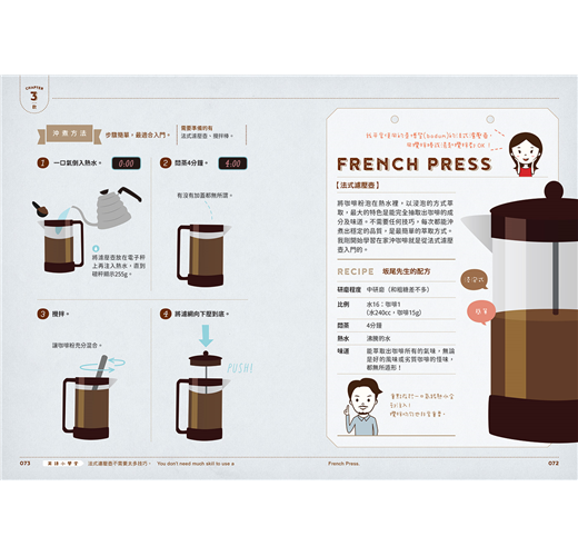 ‧大量插圖讓這本書好讀易懂。推薦給想要在家享受美味咖啡的人。