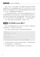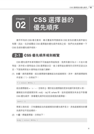 本書專門介紹CSS選擇器的相關知識。在書中作者結合多年的業界經驗及研究心得,在CSS基礎知識之上,充分考量前端開發人員的開發需求,以CSS選擇器的基本概念、優先順序、命名、最佳實作,以及各虛擬類別選擇器的概述和適用場景為技術主軸,為CSS開發人員介紹有競爭力的知識和技能,並擷取出精華使讀者能在短期間習得有用的技術,直接應用在實際職場上。此外,本書也搭配專有網站,可提供線上範例觀看。本書是一本CSS進階書,非常適合有一定CSS基礎的前端開發人員學習和研讀。