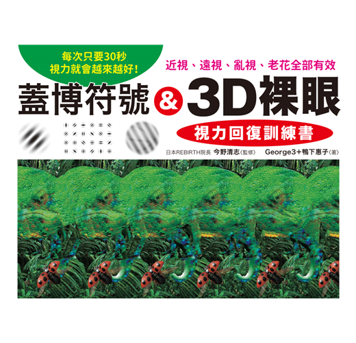 為了不讓讀者對蓋博訓練感到厭倦,除了普遍的圓形蓋博花紋,更加入了各種圖形與顏色的變化。此外,更為讀者撰寫「3D裸眼立體視覺圖」的觀看要訣,以及電眼定位點,讓讀者更易操作,享受遊戲樂趣的同時,也能舒緩眼部肌肉,幫助視力恢復。