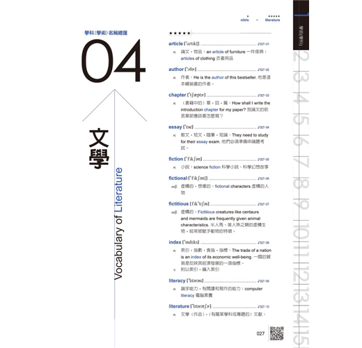 本書將托福單字分為15大類別,系統化的分類,有助於考生涉獵跨領域的單字群,並以星級標示高頻單字,星級愈高表示愈重要、愈常考,讓你背單字的同時,也迅速抓住命題方向!