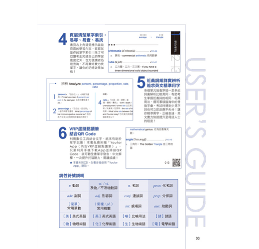 本書仿照字典雙欄式編排設計,讓你讀完一頁就可記住10幾個以上的單字!主要單字以及例句中的關鍵單字又以不同顏色顯示,讓單字即時呈現,不增加視覺壓力,又強化記憶印象,加倍學習效果!