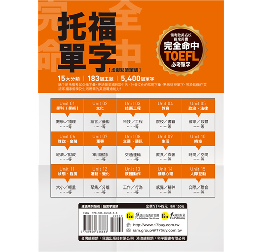 本書為2020年出版的《完全命中TOEFL托福單字【虛擬點讀筆版】》的修訂版。
