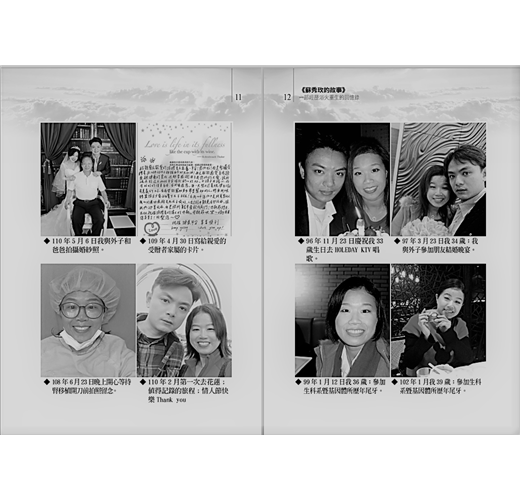 這本屬於秀玫的前傳書籍在編著前,我鼓勵她先嘗試以「第一人稱」來思考自己人生,希望她可以透過口述錄音、與我對話等方式整理自己的人生經歷,來療癒自己的心性,因此,讀者會看見許多她透過回饋生命的過程和部分重新整理後的文字分享。在收筆之前,她果真如她的焦慮預言,住進加護病房,幸好,情況在馬偕紀念醫院仁醫們,與深愛她的家屬陪伴下已逐漸好轉,希望這本短篇故事,也是秀玫的前傳,可以在她出院前,幫助她完成出書的心願,並展開屬於秀玫這位現代奇女子的幸福人生