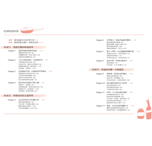 如果你是樂於享受美食的饕客,又或者是追求極致米其林的料理師,那麼你不僅能在這本書中找到諸多廚房密技,也開始掌握如何運用風味來魅惑人心,更值得一提的是,書中的料理科學知識將顛覆你過去的想法,你開始發現:「原來,料理是這麼的有趣!」