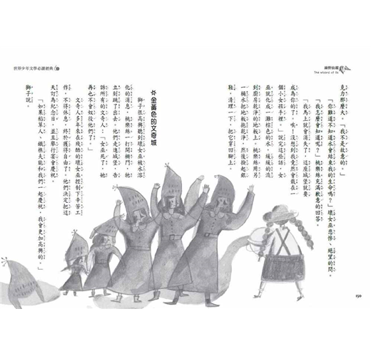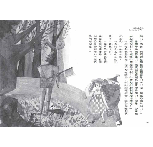 一路上,桃樂絲遇到了想變聰明的稻草人、想要心的鐵樵夫、渴望勇氣的膽小獅子,大家結伴同行,一起走上黃磚路。