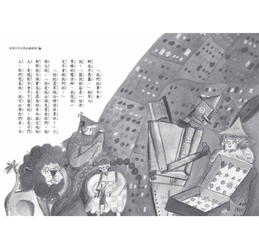 「這個嘛……」歐茲說:「我想你根本就不需要心。心使大多數人都不快樂。你可能不知道,沒有心反而是件幸運的事。」