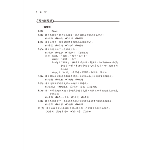 本書第二部分收錄歷年試題及解析,範圍最多最廣,讓你能掌握考試脈動與命題方向,是考前最後衝刺的書籍,藉由不斷地重複練習學習答題技巧,必定能在考場所向披靡!