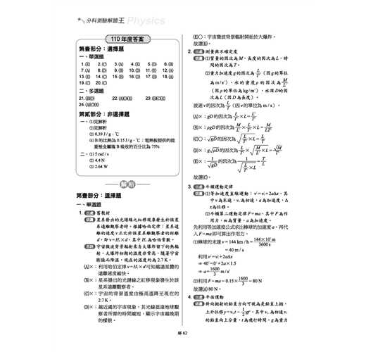 坊間對於多選題題解,僅將各個選項的解答概略寫出,並未標明是非對錯,同學常常得翻回題目頁面,才能逐一對照檢視各選項敘述,有鑒於此,鶴立解題王不僅解析詳細,還將各選項逐一分析,讓同學不僅知其然,更知其所以然。
