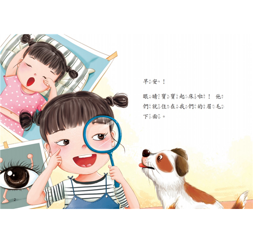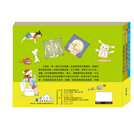 讓小朋友透過繪本了解人體的消化系統,學習保護腸胃道的方法,養成良好的飲食和便便習慣;學習保護骨骼和脊椎,讓自己身姿挺拔的方法;學習保護視力,讓自己的眼睛亮晶晶。