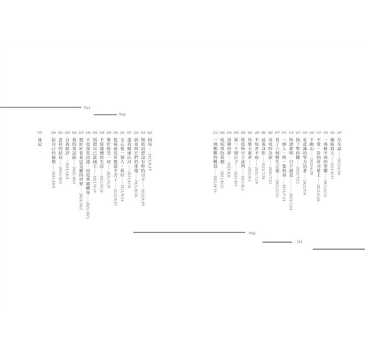 不要說一年之前,就算一個多月之前,我也沒料想到自己的處境會變成這樣,到現在也還沒有想出適切應對的方式,也還是只能過一天算一天、過一小時算一小時,等我找出了「自處之道」,再來跟大家分享—呸、呸,誰要跟你分享病痛的經驗?