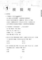 熟悉考試方式是應考時能否獲得高分的關鍵之一。本部分仿照統測題型,替考生整理了5回模擬試題,每回有38題選擇題及1篇作文,並在試題後提供讓考生能整理自身作答情形的「檢討筆記頁」,讓考生透過實戰模擬演練,快速鍛鍊答題技巧與速度,正式考試時便能從容面對!