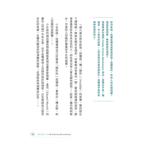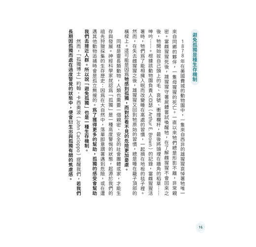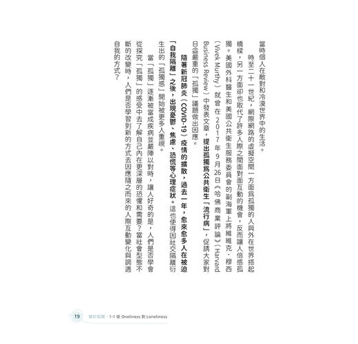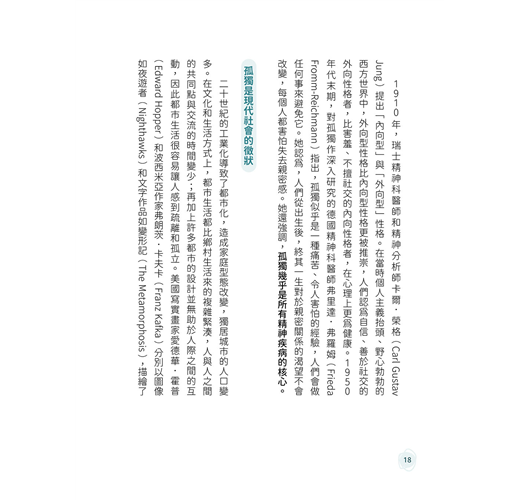 6.每篇皆有短語或引導故事作為開頭,詮釋孤獨感受及對身心健康造成的影響,增加閱讀的吸引力。