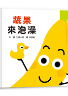 《蔬果來泡澡》蝴蝶頁藍色方格暗示浴室瓷磚,說明是洗澡的故事。在共讀中,成人從書名頁洋蔥奶奶手上掛著毛巾,和孩子一起預測她要去哪裡?從不同角色但重覆脫衣服的動作,預測去洗澡的情節。除此之外,角色脫衣服的擬聲詞,以及享受泡澡樂趣的讚嘆語,皆能擴充孩子形容與描速事件的能力。