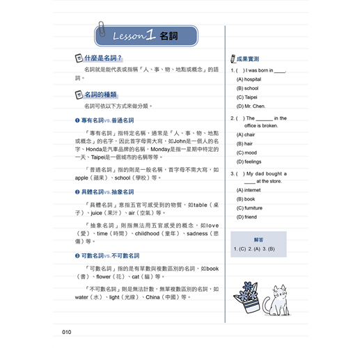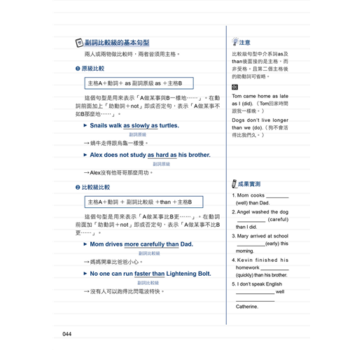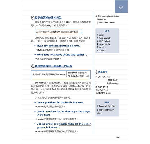 在右側欄位補充進階文法觀念,並同樣搭配舉例說明,讓讀者可以輕鬆理解進階文法概念,全方位無死角掌握英文文法!