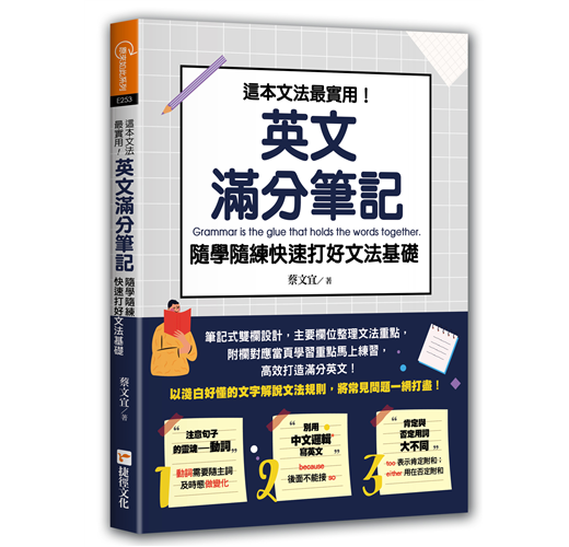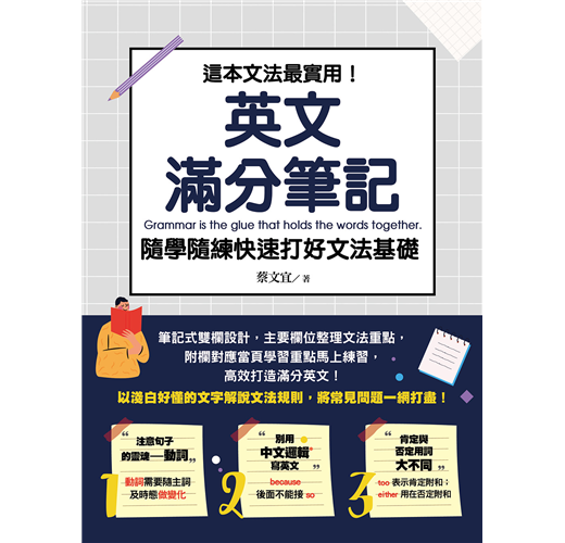本書採雙欄式筆記設計,主要欄位將文法重點整理條列,搭配淺顯易懂的解說與大量例句,讓再複雜的文法也一目了然;右側欄位有對應當頁學習重點的練習題,讓讀者可以馬上練習加深印象,學習效果更顯著!