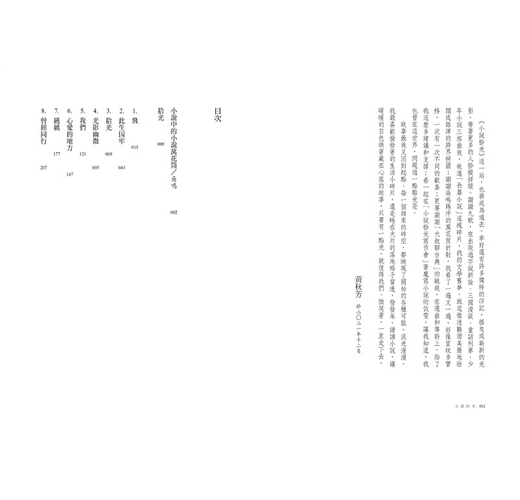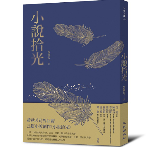 黃秋芳長年關注兒童文學,創作與教學成績蜚然,她回歸文學行列,交出長篇小說《小說拾光》。小說充滿強烈的時代感,故事軸線融入時事,從一九四五年的台灣,到二○一九年的COVID-19,場景從新竹到台北,由巴黎到蒂賓根,再由上海到台東,穿梭交織卻又真實的存在著。她巧妙混合藝術、音樂、歷史與文學於其中,藉由小說中的小說,還原出人生種種況味,打造出動人的生命尋光之旅。