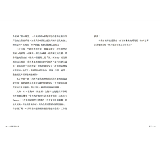 中美「戰爭」將產生許多連帶損害(Collateral Damage),許多國家即使不選邊站,也會受到負面影響,這是大風險,但是機會險中求,做為企業經營者或者是投資人,你必須了解,中美「戰爭」的趨勢將如何影響這個世界,以及你的企業、工作與投資!