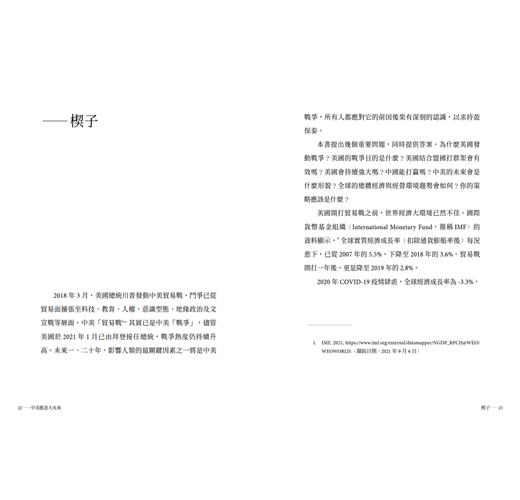 從川普在美國總統任內發動中美貿易戰,到拜登接任總統後持續升高戰爭熱度,兩強之間的爭鬥從貿易面擴張至科技、教育、人權、意識型態、地緣政治及文宣戰等層面。名曰中美「貿易戰」,卻儼然是兩國的一場正規「戰爭」。