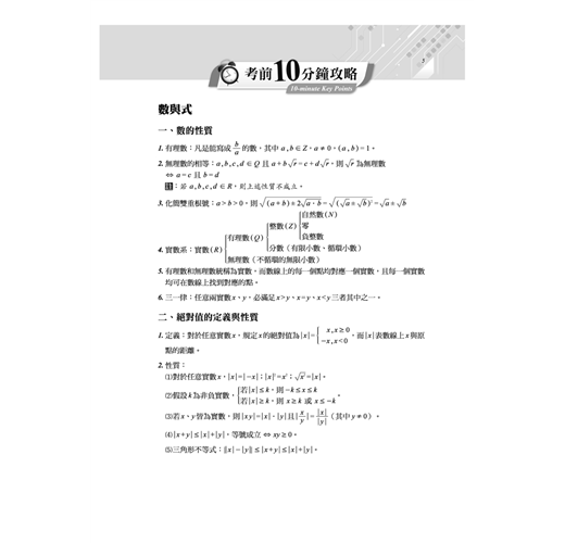收錄考前10分鐘攻略,依據近十年出題率及最新課綱強弱化程度,將大考測驗範圍內的必考觀念重點編入,期望學子在最短時間內能掌握重要基礎概念及定理。